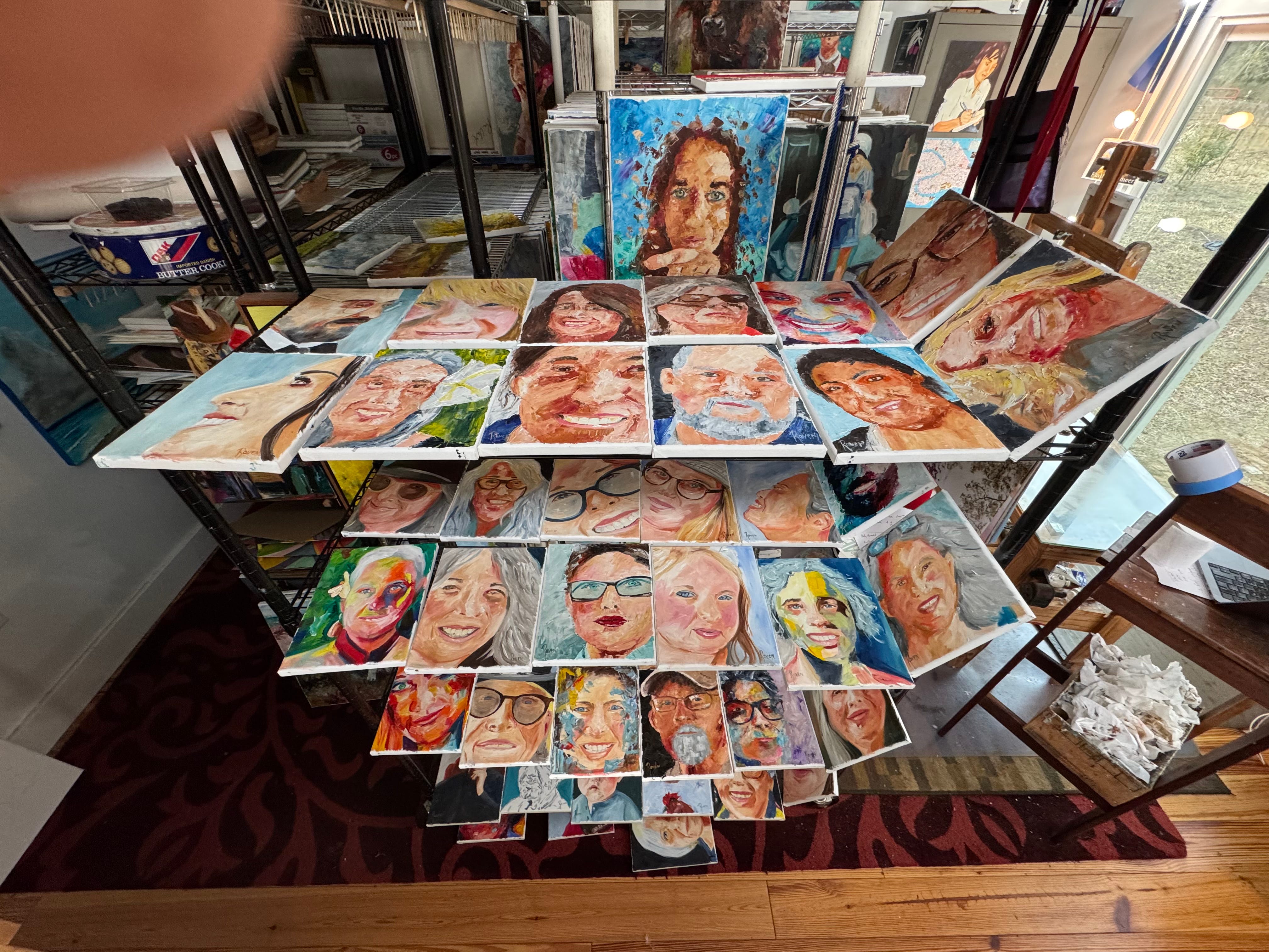 I will be sending out emails to everyone who has not already contacted me regarding their portrait. Some people may not have seen the portraits I painted for them posted on Facebook. These emails will express my desire to get the paintings to you, as I have no way to store them. I haven’t decided on a deadline, but in a couple of weeks, I’ll send notices.